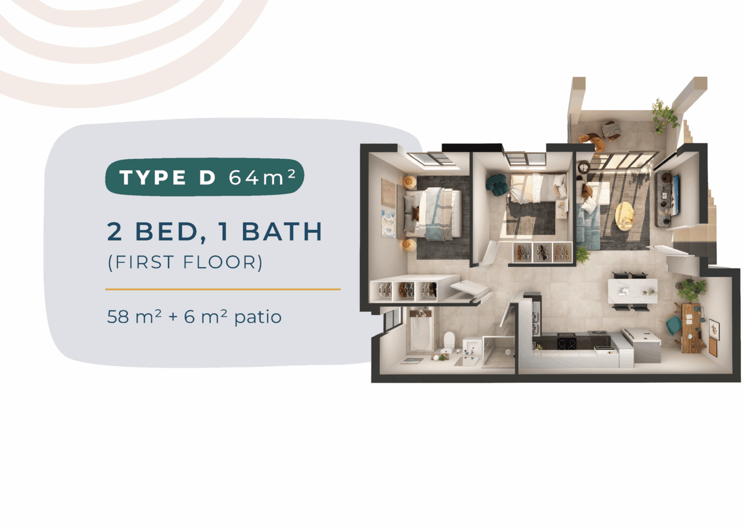 Type D (2 Bed, 1 Bath, First Floor)