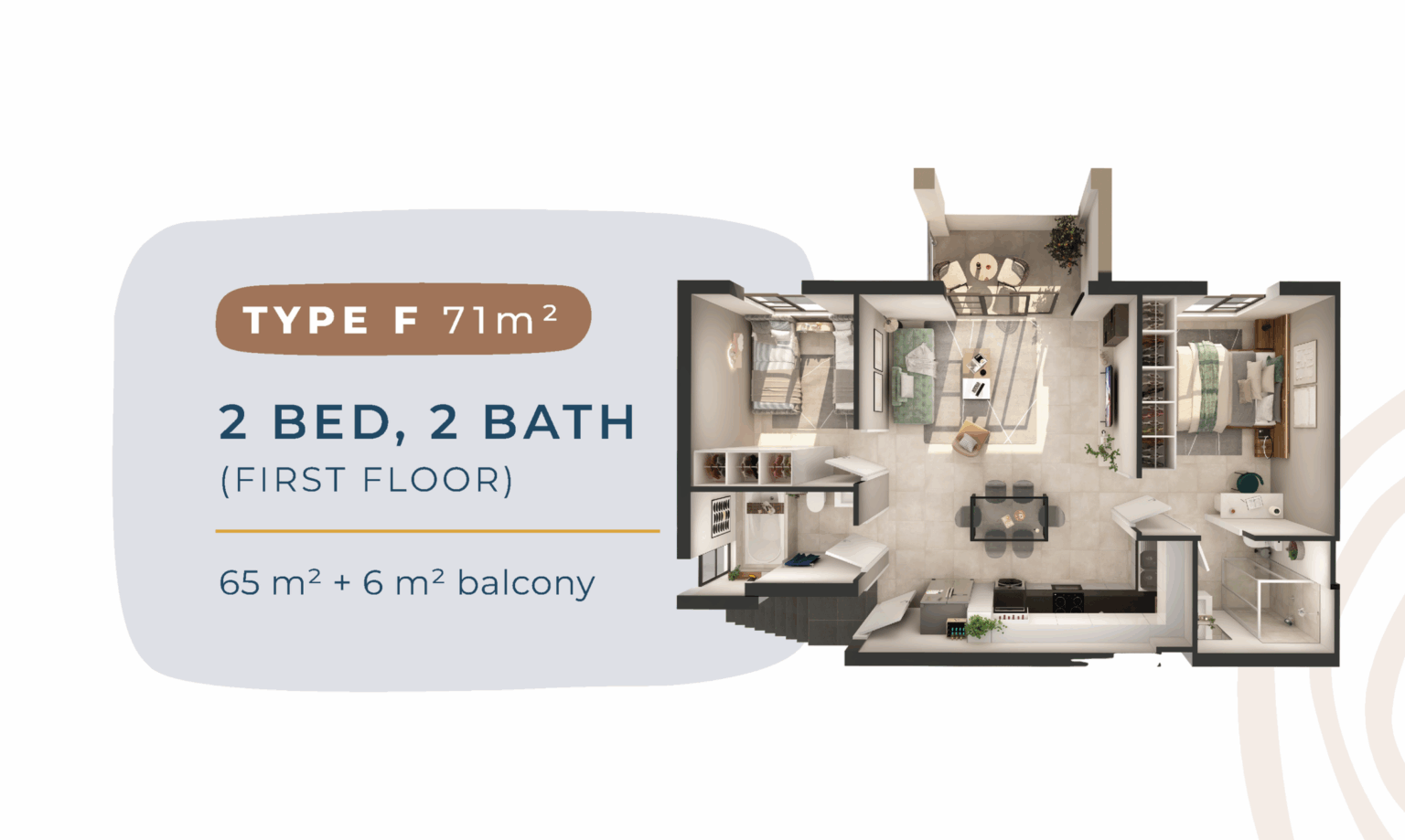Type F (2 Bed, 2 Bath, First Floor)